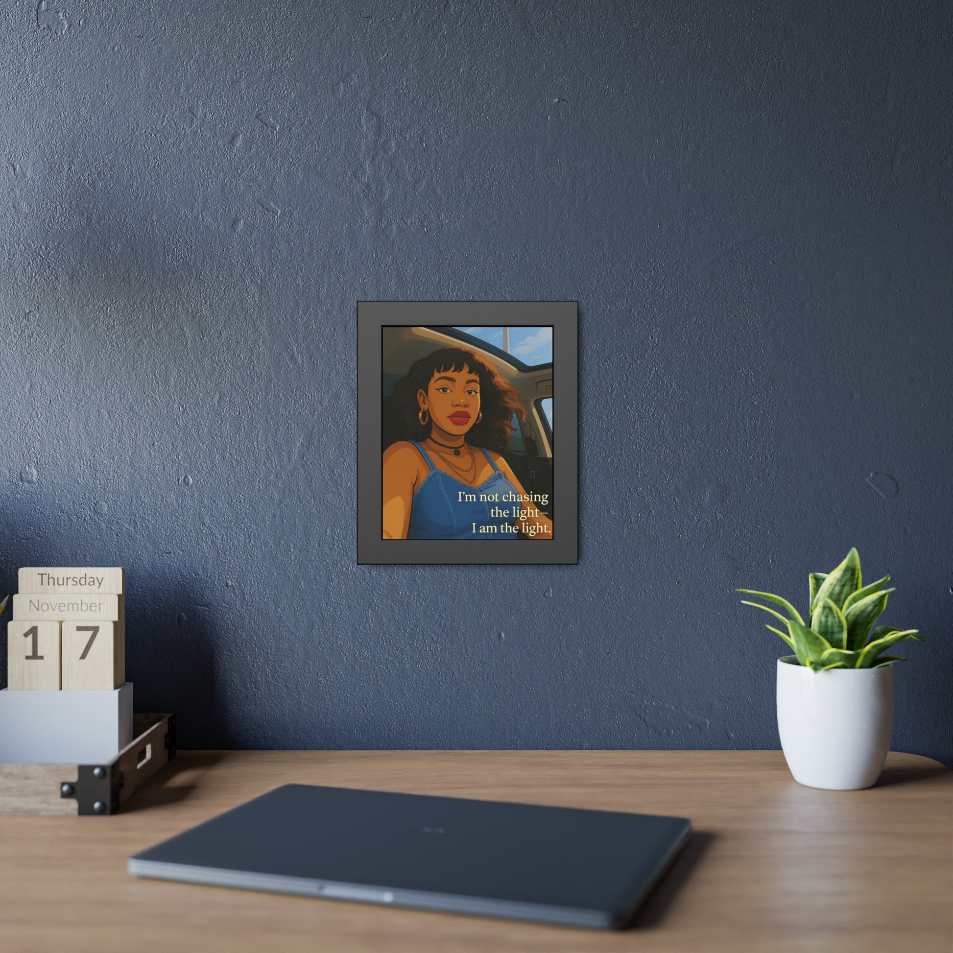 She's not chasing attention. She is the presence. This Crowned Alignment original features the quote: "I'm not chasing the light - I am the light." Framed in bold confidence and calm beauty, this print is a reminder for every woman who stopped waiting for validation and started walking in her glow.