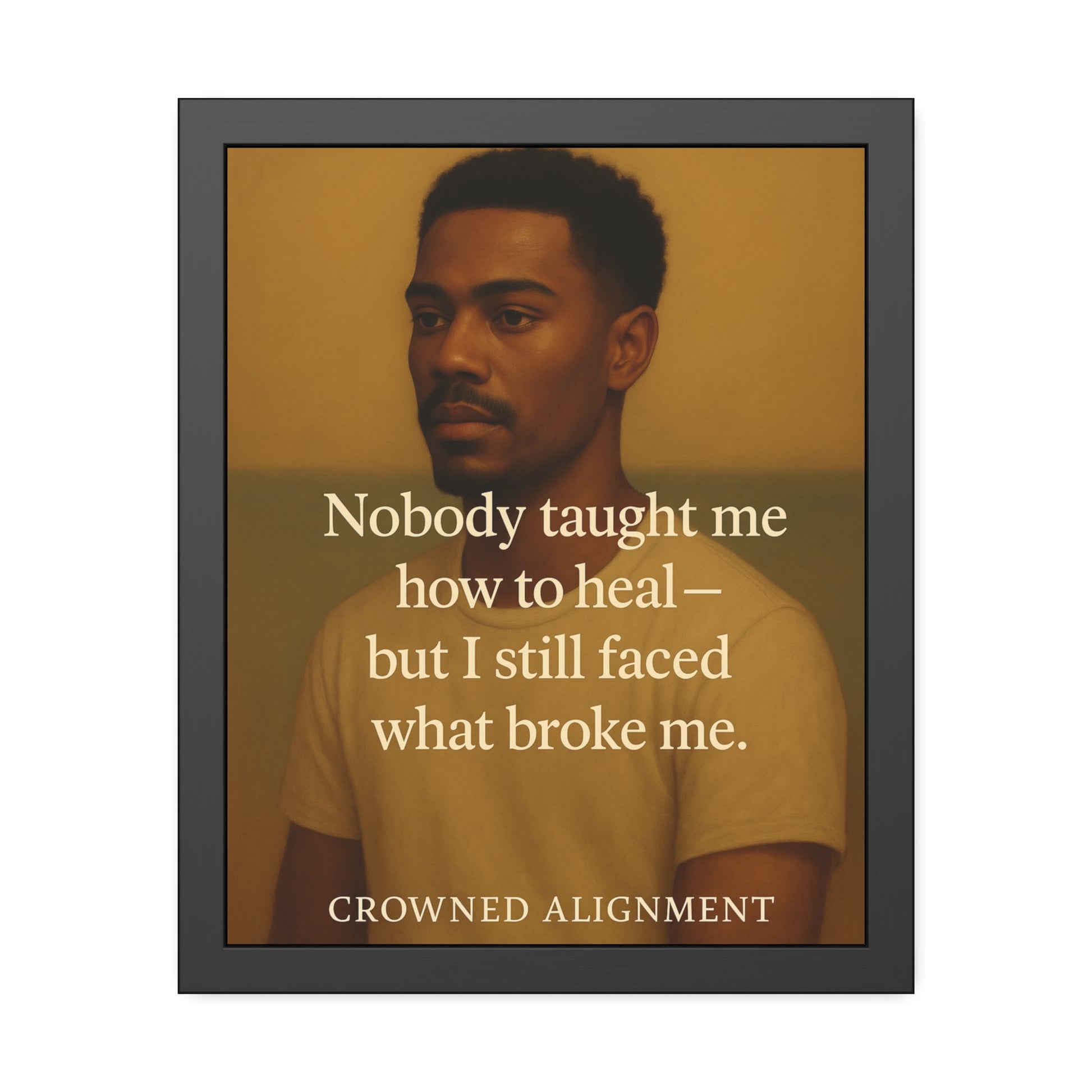 Healing isn't always loud- sometimes it's in the quiet strength of choosing to face what you hurt you. This piece reflects the journey of a man confronting his pain and standing in his truth. Part of the Crowned Alignment collection, it's for the soul who chooses growth over ego and peace over pride.